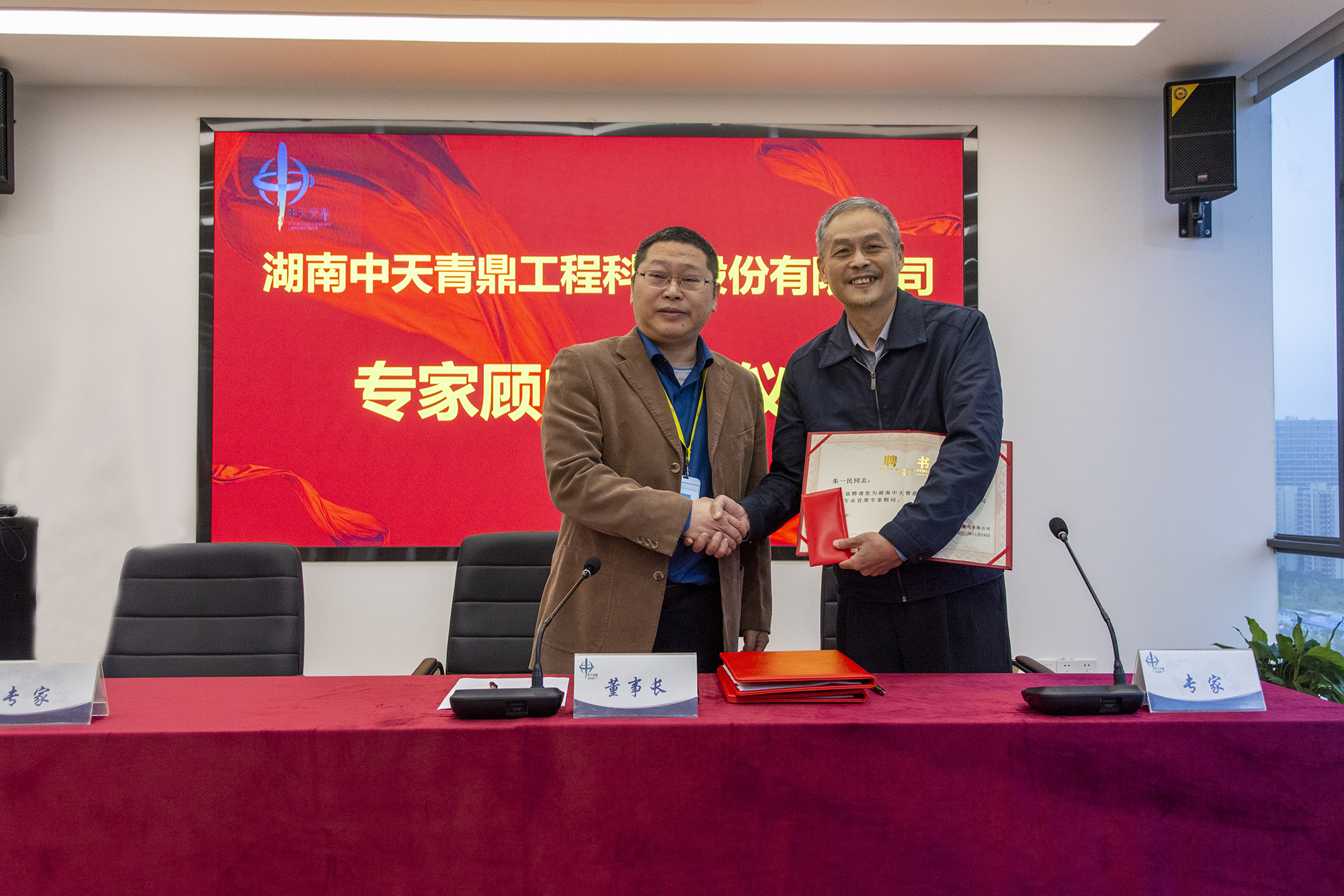 2022年11月28日下午,湖南中天青鼎工程科技股份有限公司在總部會議室舉行專家顧問聘任儀式,總經(jīng)理張岳安,朱一民、周科平教授出席并致辭,公司主要領(lǐng)導(dǎo)及全體人員參加。